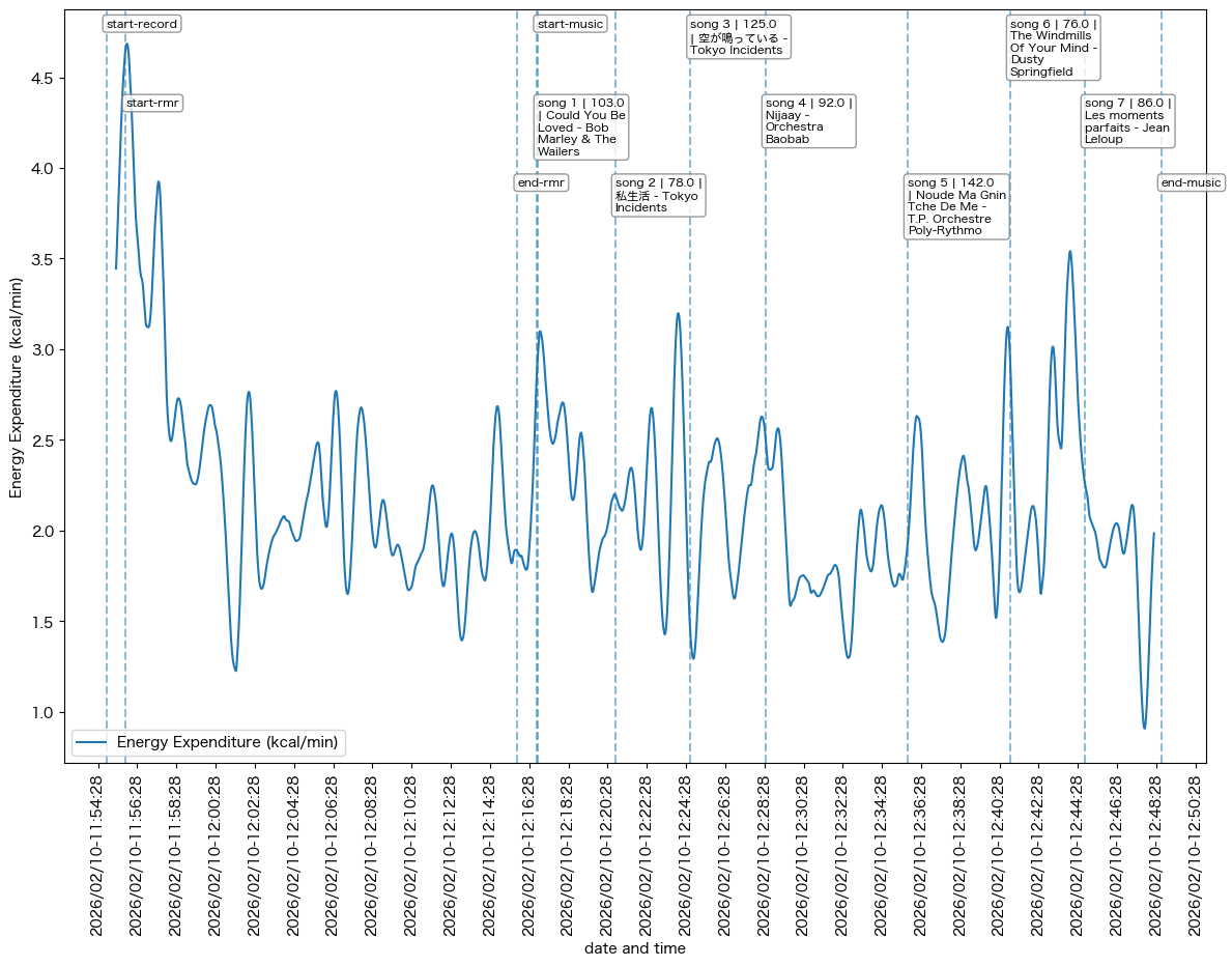 February 27, 2026 The class 身体行動計測演習 is currently in session. See a plot from the first indirect calorimetry experiment.
